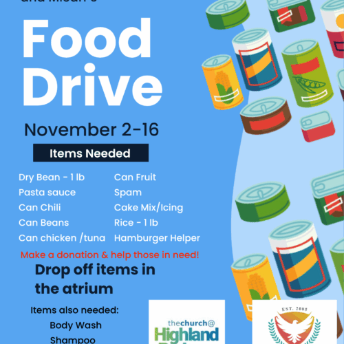 Please bring your non-perishable food items to the atrium and they will be taken to Micah 6 and the Baptist Community Center Mission. Also needed this year: body wash,…